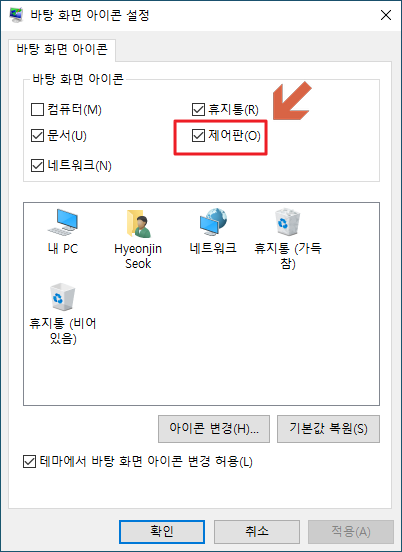 3. 바탕화면에 제어판 아이콘 바로가기 만들기