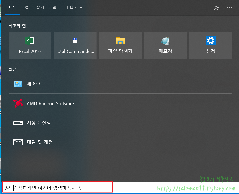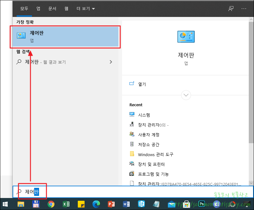 ① 검색창 단축키 : [윈도키 + S]로 검색창 뜨면 "제어판" 입력 후 엔터